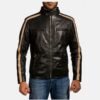 Black Leather Stripes Biker Jacket