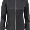 In the style of this slim cafe racer jacket for women, a timeless, adaptable item ascends into a current fit design. The jacket is made of high-quality, long-lasting genuine leather and has a central silver-tone zip fastening. Soft viscose lining and several pockets for convenience are among the functional features. Dress it up for work or keep it casual for a laid-back look.