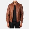 For Men’s Coffman Olive Brown Leather Bomber Jacket Burnishing is used to polish the sheepskin leather. Quilted viscose lining in the inner shell, with a Button Flap clasp and two inside and four outside pockets.