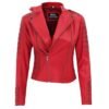 Look extra awe-inspiring in the red leather jacket, an asymmetrical style staple for ladies.