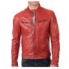 Men’s Red Leather Motorcycle Biker Jacket